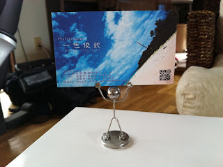 名刺やショップカードなどを手のくぼみにはさんで飾るんですけどね!