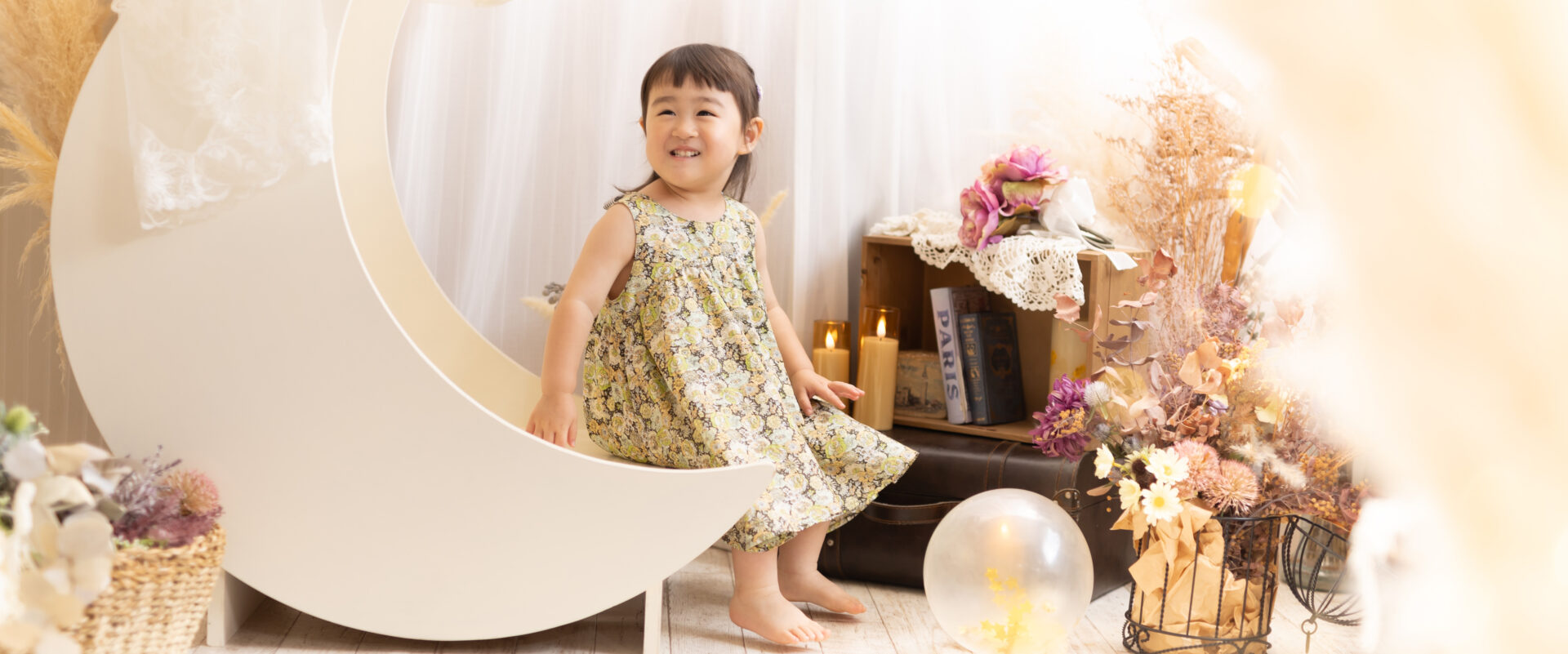 毎年の誕生日写真をスタジオで撮影することで、写真のクオリティが安定し、数年分を並べたときの満足度がぐっと高まります。
